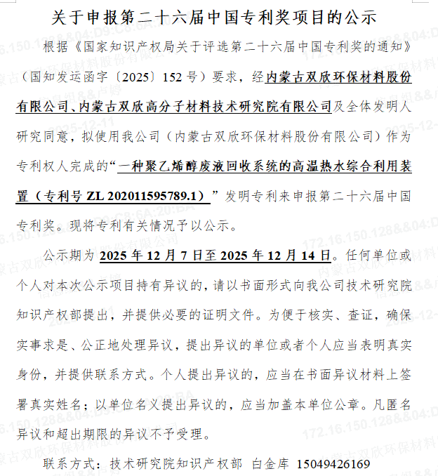 内蒙古双欣环保材料股份有限公司年产3万吨新型高效环保助剂扩产改造项目环境影响评价征求意见稿公示